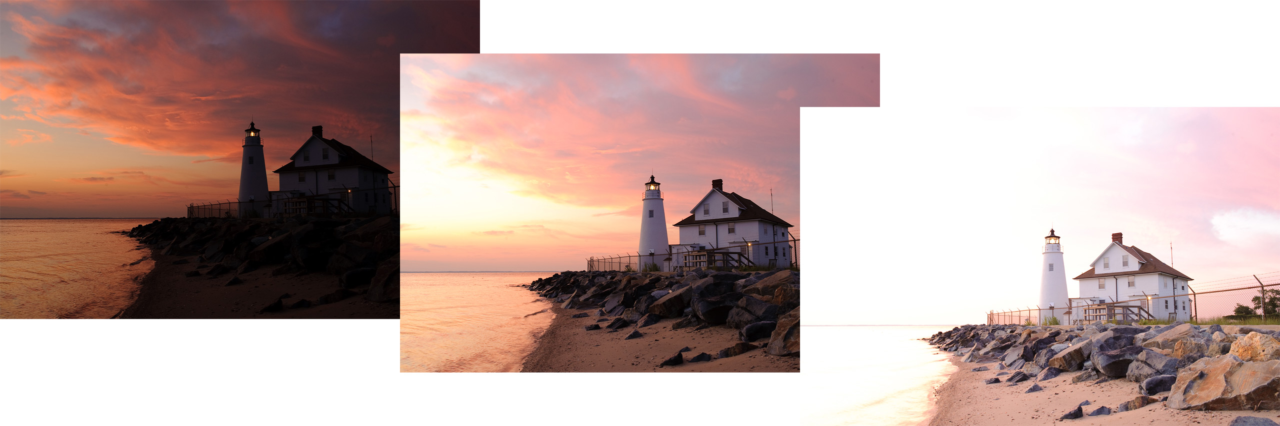 Beispiel-Belichtungsreihe aufgenommen mit -2, 0 and +2 EV