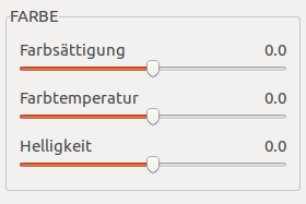 Paßt die Farbtemperatur des Bildes an. Beim Bewegen des Reglers nach rechts ergibt sich ein „wärmeres“, mehr gelb-orangefarbenes Aussehen, oder ein „kälteres“, mehr bläuliches Aussehen, wenn der Regler nach links bewegt wird. Der Standardwert (0) beläßt die Farbtemperatur unverändert.