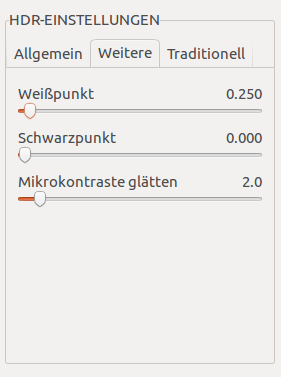 Glättet die lokale Kontrastverstärkung. Es bewirkt zum Beispiel die Reduzierung von Bildrauschen in Himmelspartien und erzeugt tendenziell einen 'saubereren' Bildeindruck im fertigen Bild.