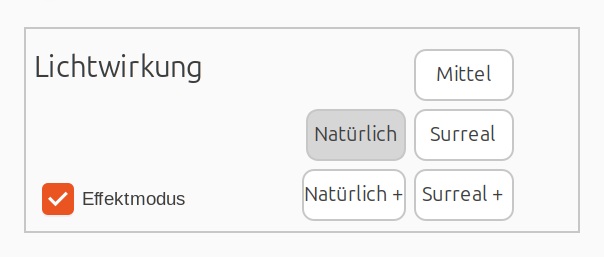 Die beiden Modi zur Anpassung der Lichtwirkung beeinflussen das allgemeine Aussehen des Bildes und kontrollieren, ob es eher natürlich oder surreal wirkt.