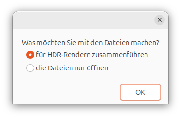 Dialogfeld Zu HDR zusammenführen bei geladenen JPG- oder TIF-Dateien