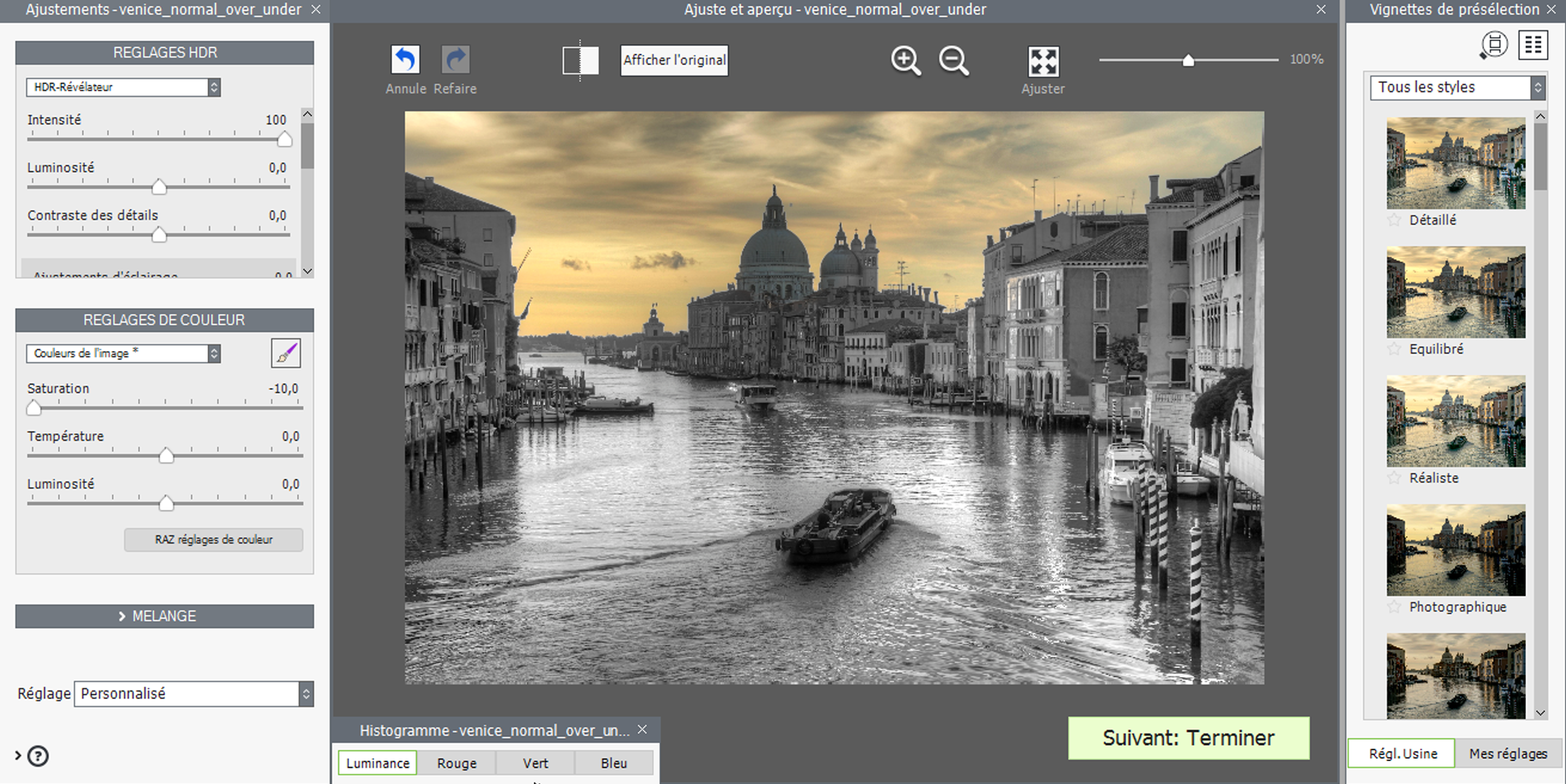 Attention : les ajustements sélectifs s'appliquent uniquement à la méthode HDR en cours. Si vous changez de méthode HDR, les sélections sont effacées.